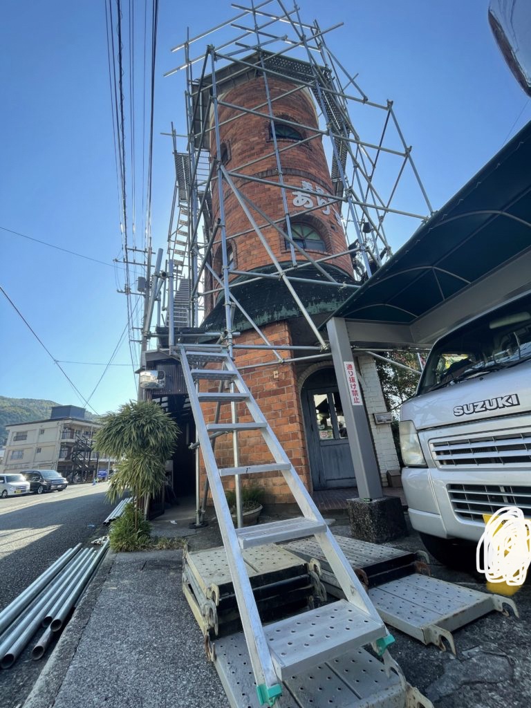 絶好の足場日和(暑過ぎるくらいだったそうです(笑))の中、宇和島市内にある美容室からご依頼を頂き足場の工事に入らせて頂きました!