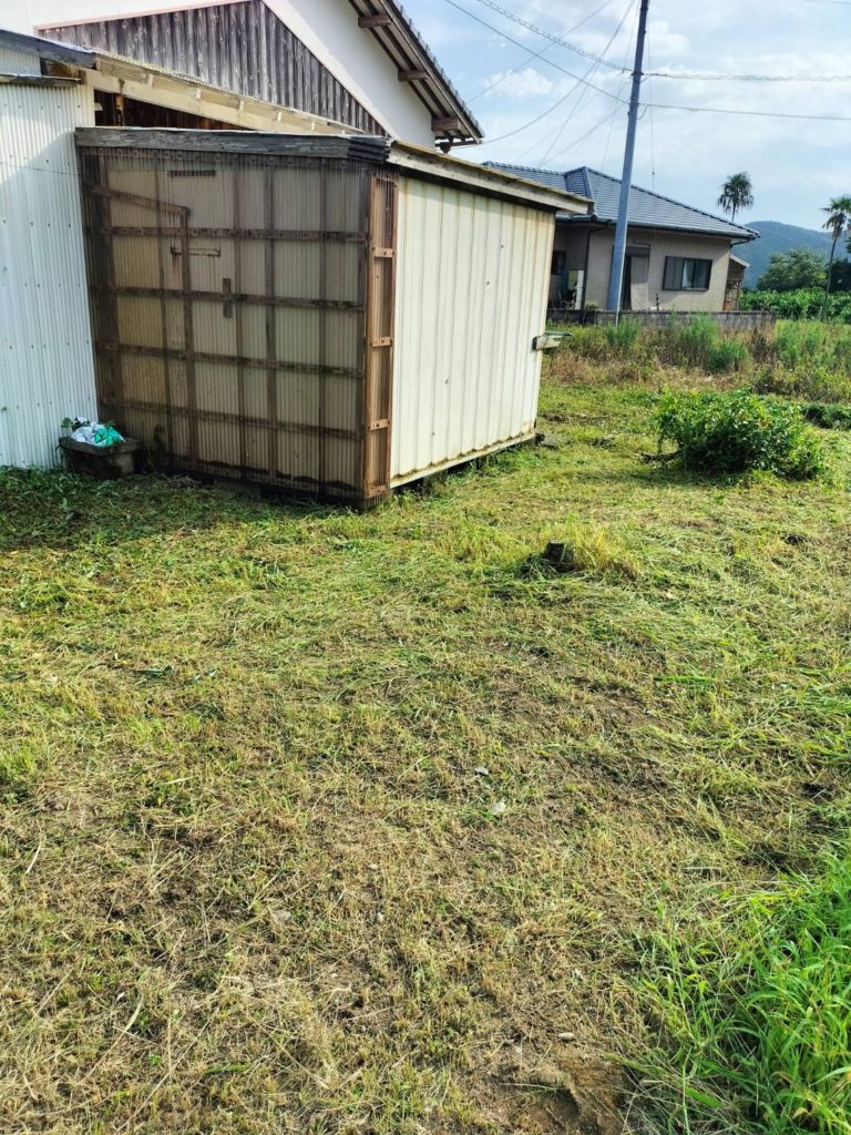 ここの家主さまは御高齢で足も不自由です。いつも外壁や屋根等の改修依頼と合わせて、心配な個所はないか点検しながら草刈りもさせていただいております。仕上げに除草剤を撒いて完了、、、としたいのですが、草刈りのあとにすぐ除草剤を撒いてもすぐに雑草が生えてしまいます。2〜3週間ほどして除草剤を撒きしっかり枯れてくれたら成功ですね(^-^)